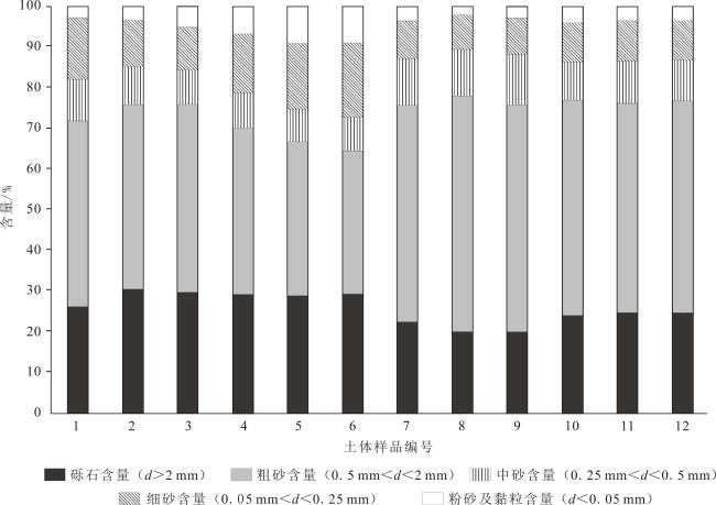 表2 岗尾崩岗土体颗粒特征Tab.2 Grain characteristics of soil mass at Gangwei collapsing hill |